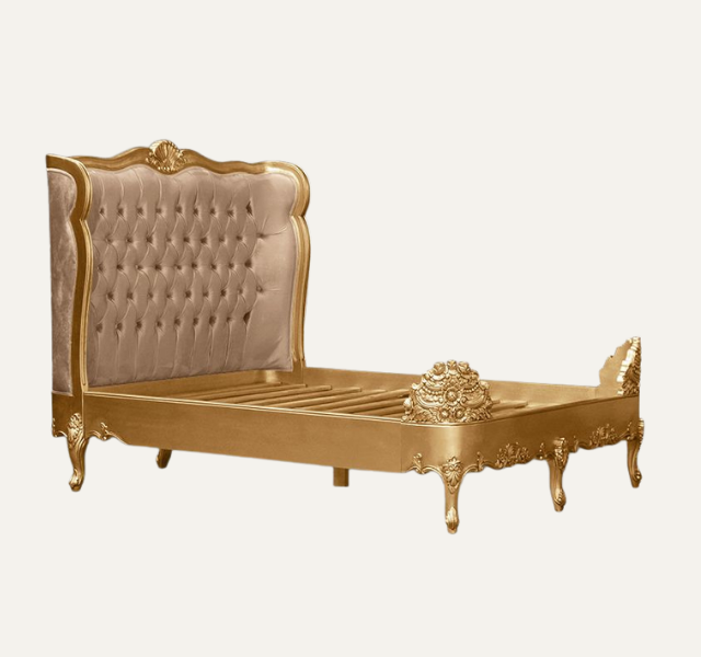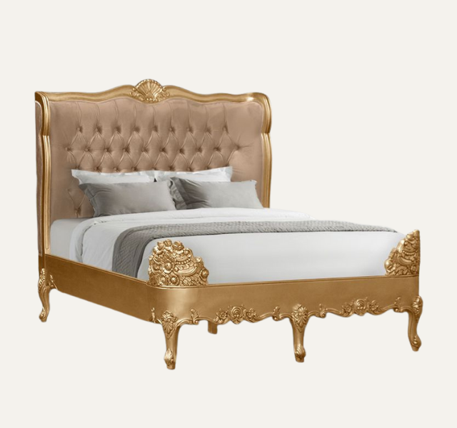 เตียงคิงไซส์หรูหราหุ้มผ้าสไตล์ฝรั่งเศสคลาสสิก ทำด้วยมือจากไม้มะฮอกกานี ประกอบเสร็จแล้ว