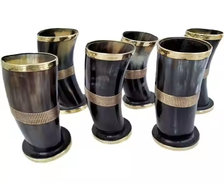 แก้วดื่มไวน์ทรงเขาสัตว์แบบไวกิ้งโบราณ ทำด้วยมือ พร้อมลวดลายเซรามิก สำหรับตกแต่งโต๊ะอาหาร โดย Crescent Crafts