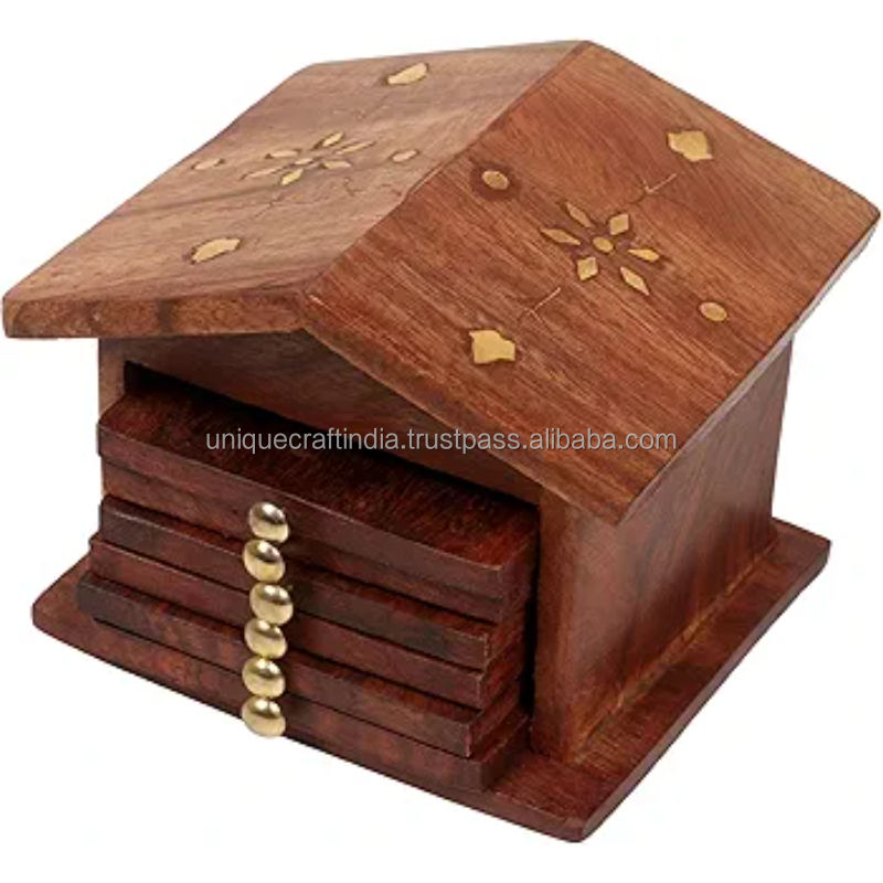 ชุดจานรองแก้วทำมือ (ชุด 5 ชิ้น) พร้อมฐาน ลายใบไม้คลาสสิก ทำจากไม้ หนา 5 มม. ตกแต่งโต๊ะสไตล์ธรรมชาติ