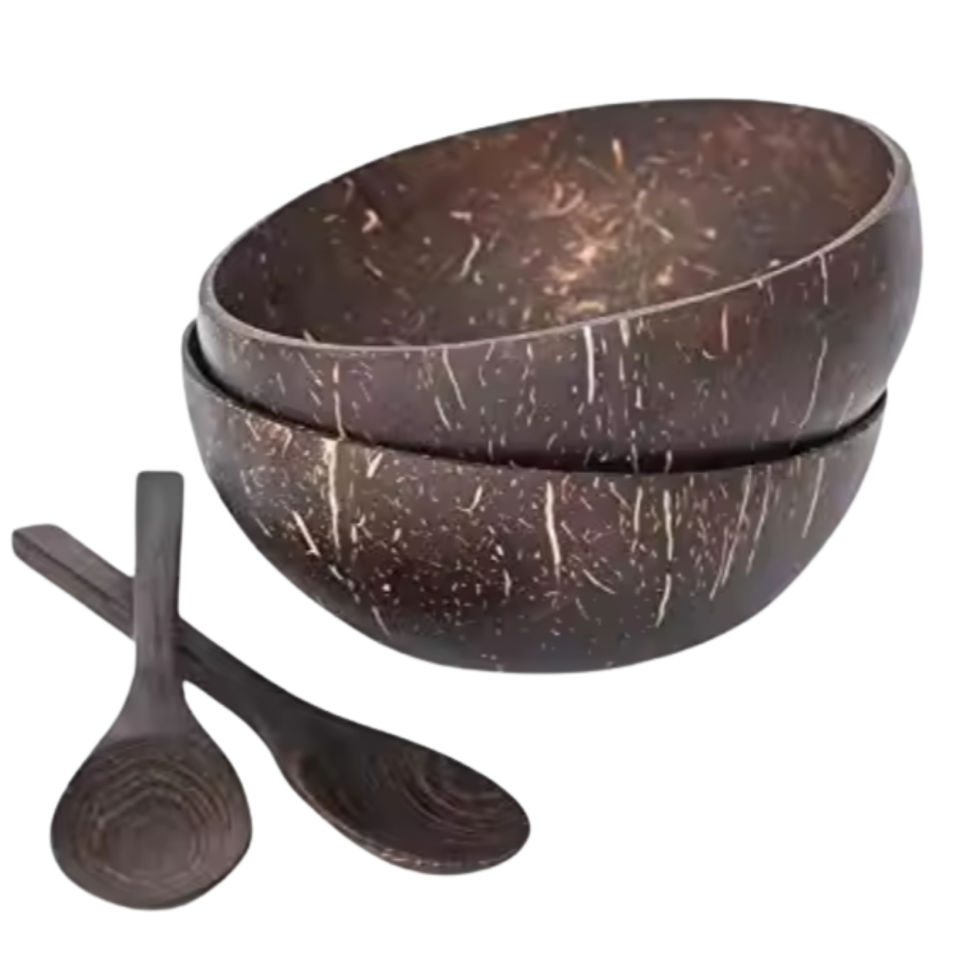 ชามเสิร์ฟเปลือกมะพร้าวทำมือสำหรับขนมปั่นซีเรียลและการรับประทานอาหารที่ยั่งยืนและเป็นธรรมชาติ