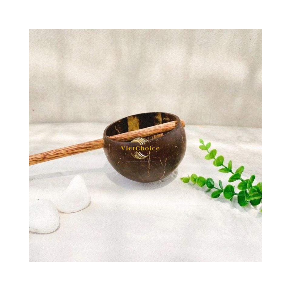 ทัพพีตักน้ำมะพร้าวทำมือจากเปลือกมะพร้าวธรรมชาติสำหรับใช้ในครัว