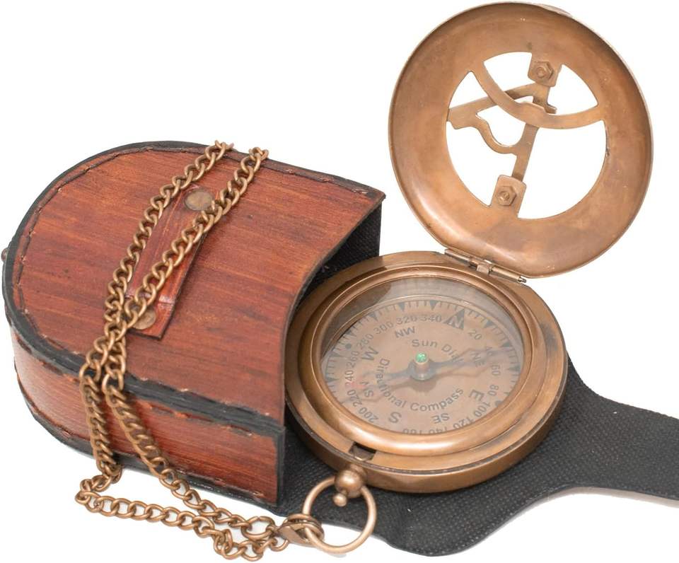 เข็มทิศนาฬิกาแดดทรงสี่เหลี่ยมผืนผ้าทองแดงทำมือแบบคลาสสิก | นาฬิกาพกโบราณสไตล์วินเทจ ของขวัญสุดพิเศษสำหรับผู้ชาย
