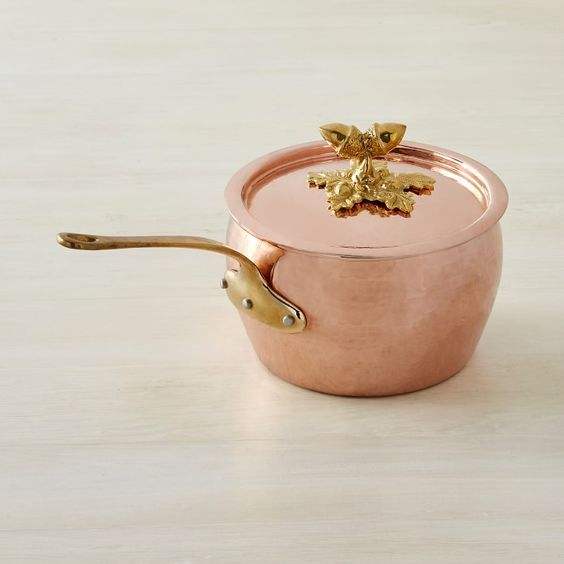 กระทะทำอาหารทองแดงทำมือพร้อมที่จับทองเหลืองหรูหราและทนทาน