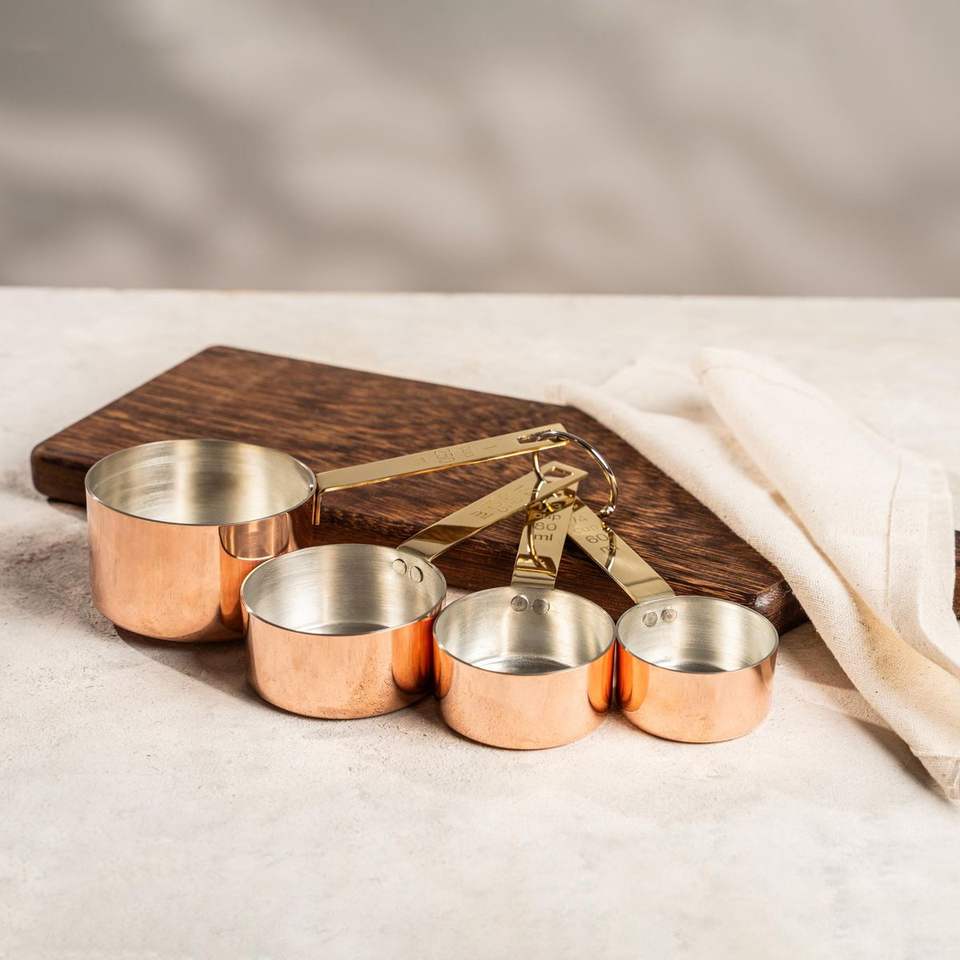 ถ้วยวัดทองแดงทำด้วยมือที่มีดีไซน์ที่ละเอียดเหมาะสำหรับการแสดงผลและเพื่อวัตถุประสงค์ในการทำอาหารทุกวัน