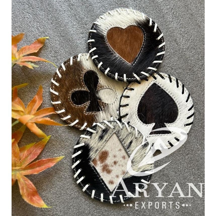 ชุดถาดรองแก้วหนังวัวทรงกลมทำด้วยมือสำหรับตกแต่งบ้านหนังแท้แบบตะวันตกที่รองแก้วของขวัญใหม่สำหรับบ้าน
