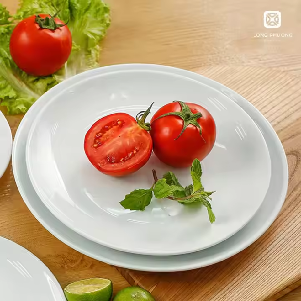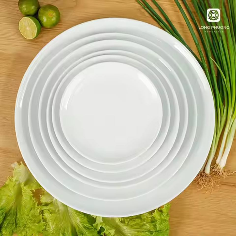 จานอาหารค่ำเซรามิกทรงกลมทำด้วยมือเครื่องใช้บนโต๊ะอาหารแบบชาวเวียดนามแนวชนบทสำหรับใช้ในบ้านและร้านอาหาร