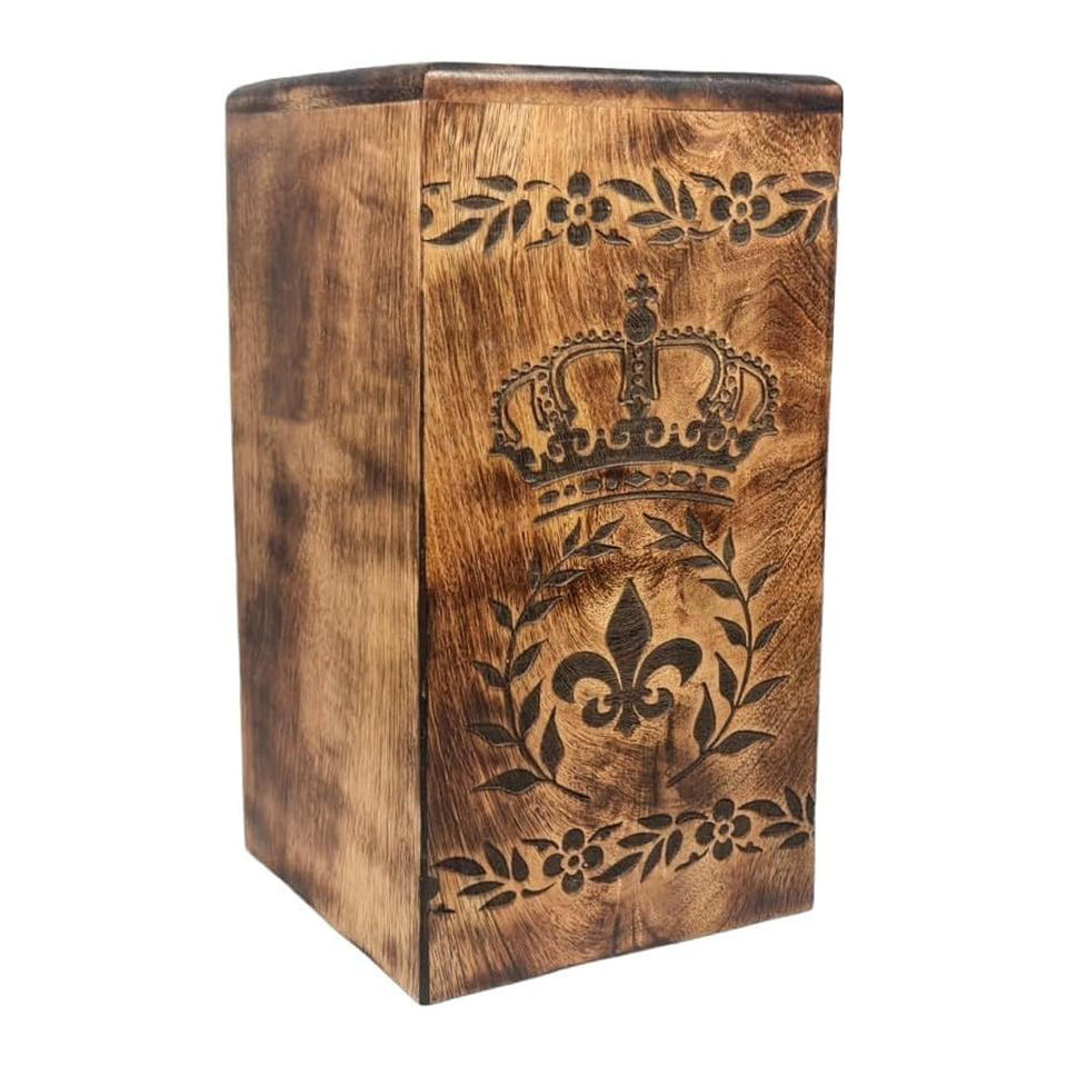 Handcrafted Custom Crown Engraved Large Wooden Urns Mango Wood Cremation Urn for Human and Ashes Factory Direct Supply Wholesale