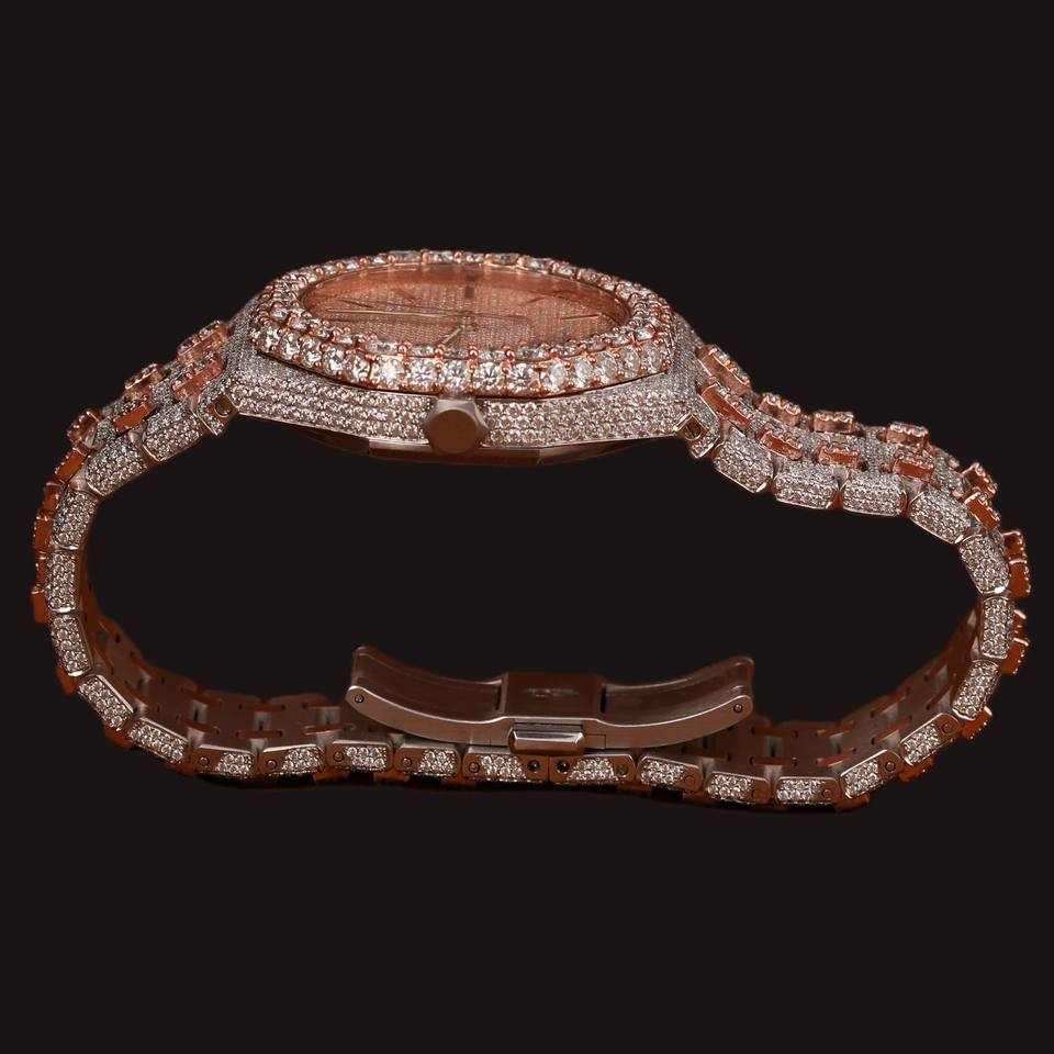 นาฬิกาควอตซ์ผู้ชายแฟชั่นฮิปฮอป หน้าปัดประดับเพชรโมอิสซาไนต์แบบสั่งทำพิเศษ ดีไซน์เฉพาะตัว ประดับเพชรเต็มเรือน รุ่นลิมิเต็ด