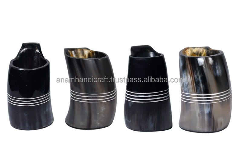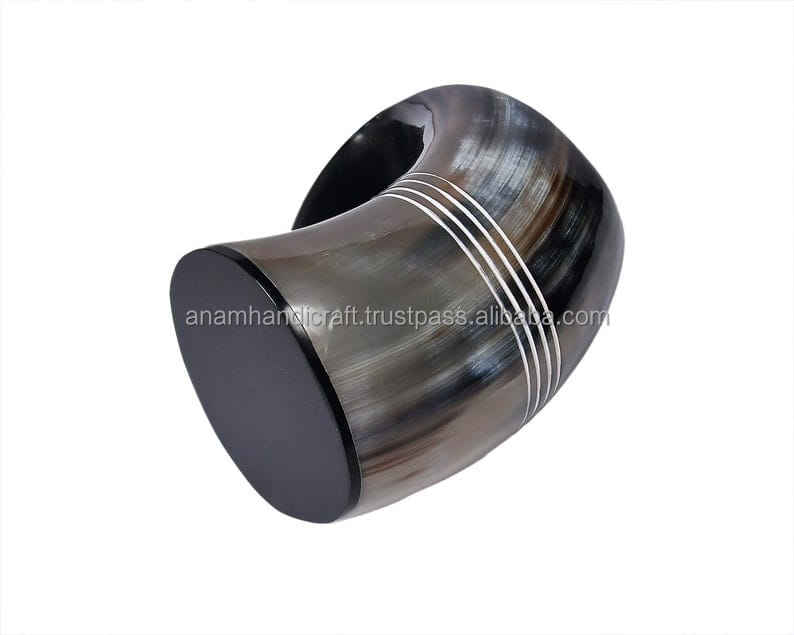 แก้วเซรามิกทรงแตรสำหรับดื่มทำมือแกะสลักแบบไวกิ้งทำจากเขาสัตว์ธรรมชาติขัดเงาสูงอินเดียสำหรับของขวัญทางธุรกิจ-ไวน์เบียร์