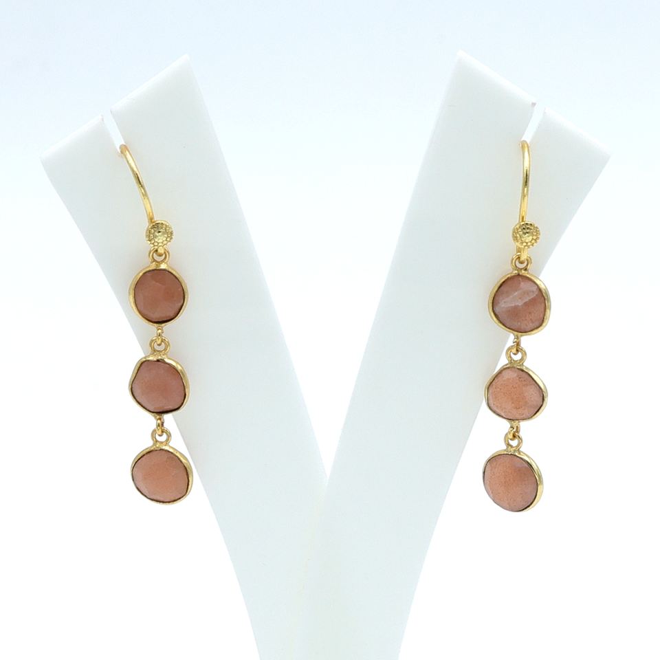 ต่างหูห้อยประดับมูนสโตนสีพีช ทำด้วยทองเหลืองชุบทอง 18K งานแฮนด์เมด DUA | ต่างหูแต่งงานสุดหรูทันสมัยสำหรับผู้หญิง | อินเดีย