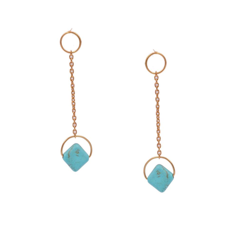 ต่างหูแบบห้อยทำด้วยมือทำจากทองเหลืองชุบทอง18K พร้อมพลอยเทอร์ควอยซ์สีน้ำเงินเพื่อสีสันและสไตล์ที่โดดเด่น