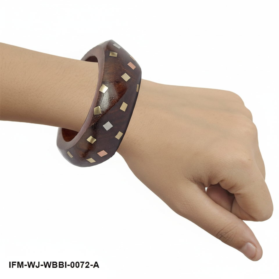 กำไลข้อมือไม้สีเข้มทำมือ ประดับด้วยทองเหลืองหลากสีสัน ลายเรขาคณิต สไตล์โบฮีเมียน สำหรับผู้หญิง