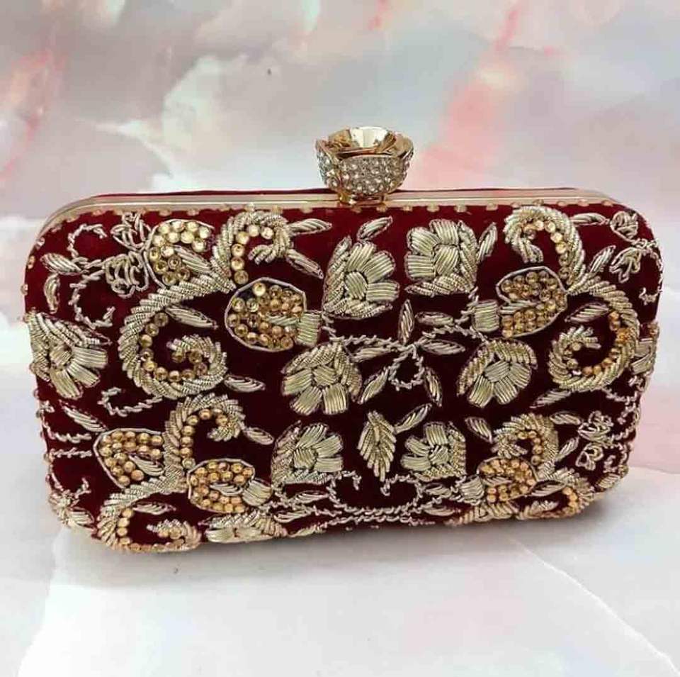 กระเป๋าคลัทช์และกระเป๋าถืองานปักดิ้นทองประดับด้วยลูกปัดอย่างประณีต สำหรับตกแต่งบ้าน
