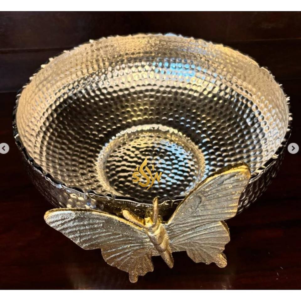ถ้วยชามโลหะสำหรับเสิร์ฟพร้อมดีไซน์แบบดั้งเดิมอุปกรณ์รับประทานอาหารเย็นสีทองแบบหวานและขนมหวานดีไซน์ทำด้วยมือ