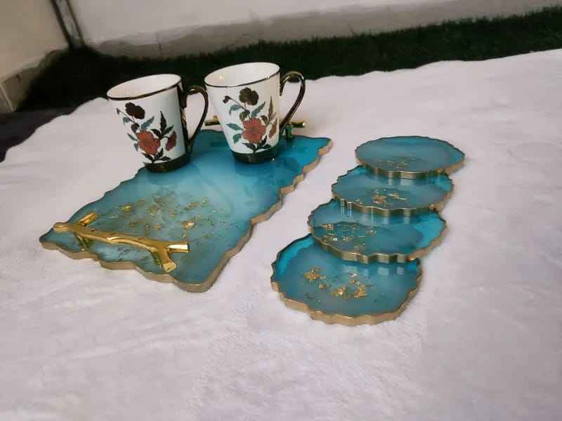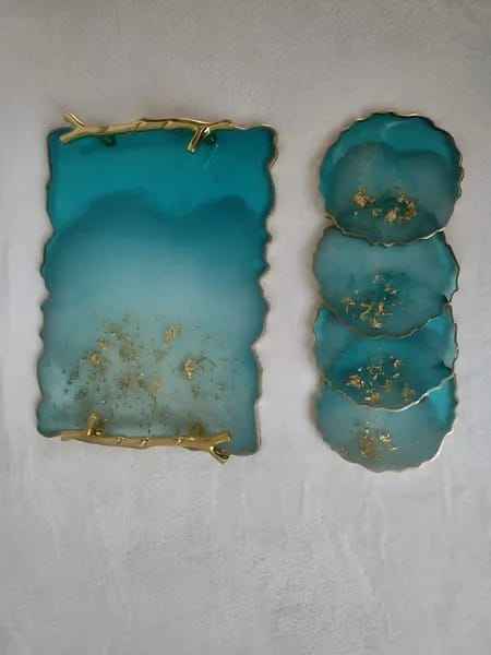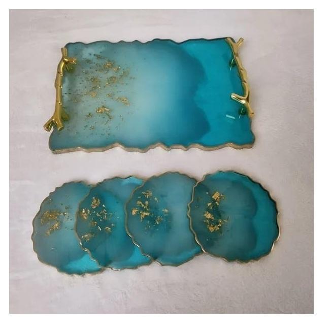 ชุดถาดรองแก้วเรซิ่น3ชั้นดีไซน์เนอร์งานทำจากไม้ออกแบบเองได้สำหรับร้านอาหารสไตล์อินเดีย
