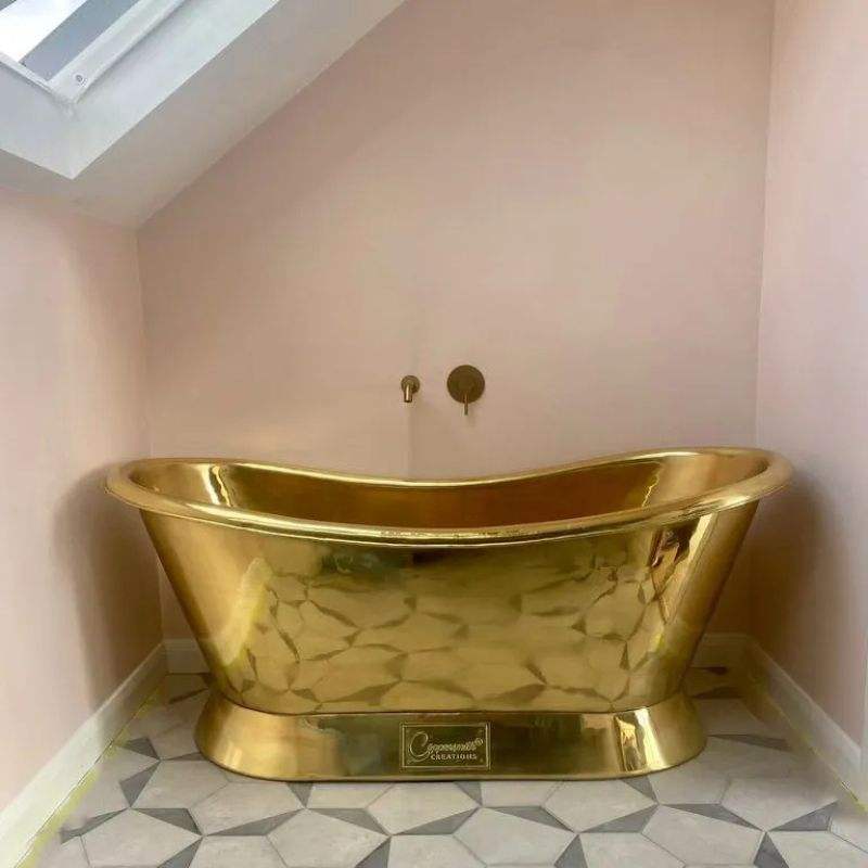 อ่างอาบน้ำทองแดงดีไซน์เนอร์ทำมือ อ่างอาบน้ำแบบลอยตัวสุดหรู สำหรับตกแต่งห้องน้ำระดับไฮเอนด์ โรงแรม และบ้าน