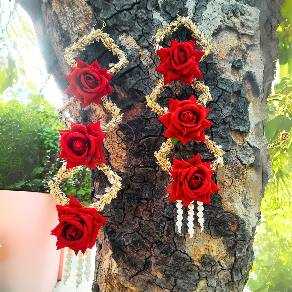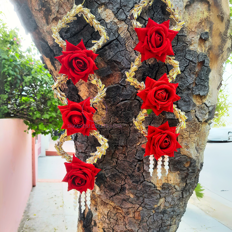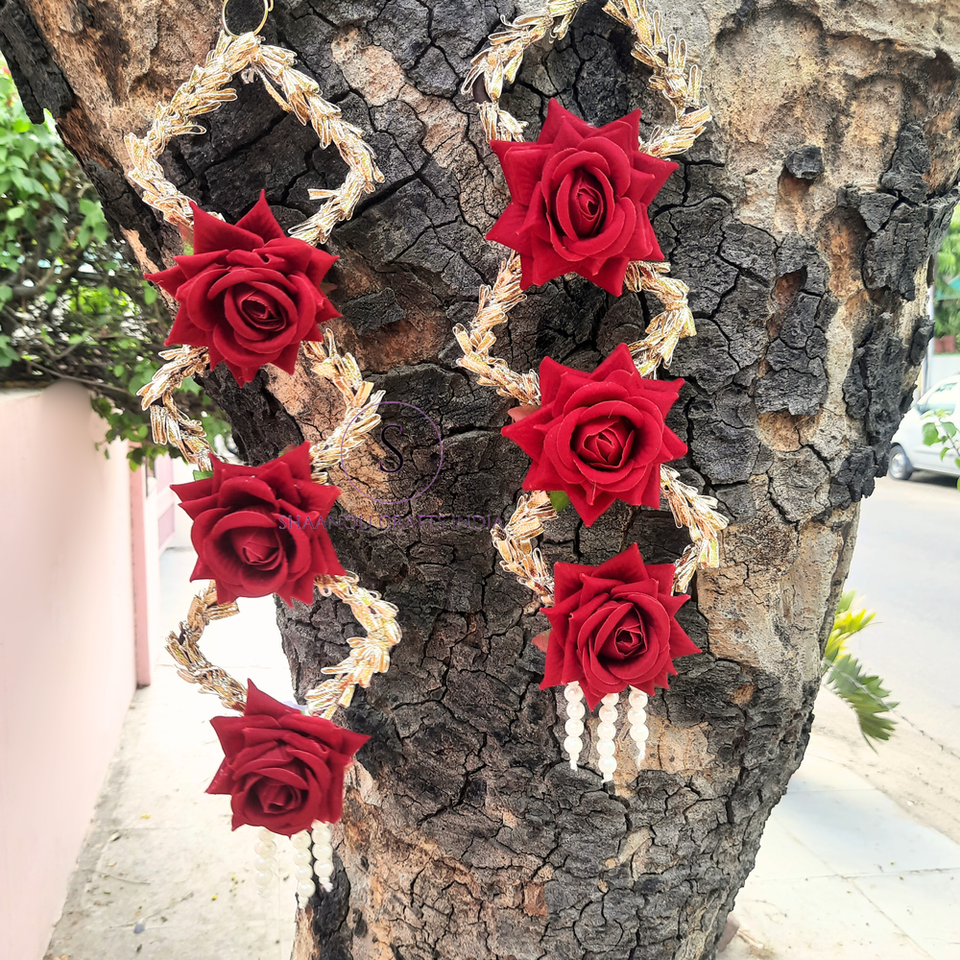 กำไลโกต้าดีไซเนอร์ทำมือพร้อมดอกกุหลาบเทียมที่แขวนอยู่กับดอกกุหลาบทำงานโมติมาลาสำหรับงานปาร์ตี้ตกแต่งงานแต่งงาน