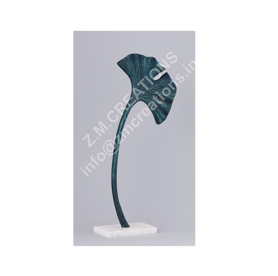 แผ่นโชว์ของบนโต๊ะแบบถอดออกได้ทำด้วยมือรูปปั้นใบไม้สำหรับบ้านสำนักงานวัสดุอลูมิเนียมฐานหินอ่อน