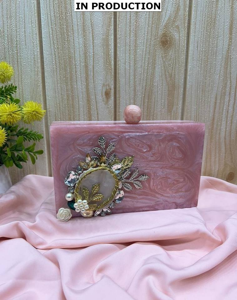 Handcrafted Designer Luxury Evening Bag for Ladies Solid Fashion Sling Magnetic Accessory Resin Pearl Decor for Bridal Clutch