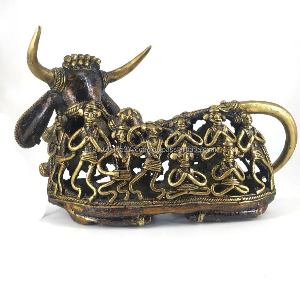 งานประติมากรรมด็อกราทำมือ รูปปั้นวัวนันดีทองเหลือง สำหรับตกแต่งบ้านและสำนักงาน ของตกแต่งยอดนิยมในเทศกาลดีวาลี วัสดุโลหะ รูปแบบมนุษย์ สะท้อนความเชื่อทางจิตวิญญาณ