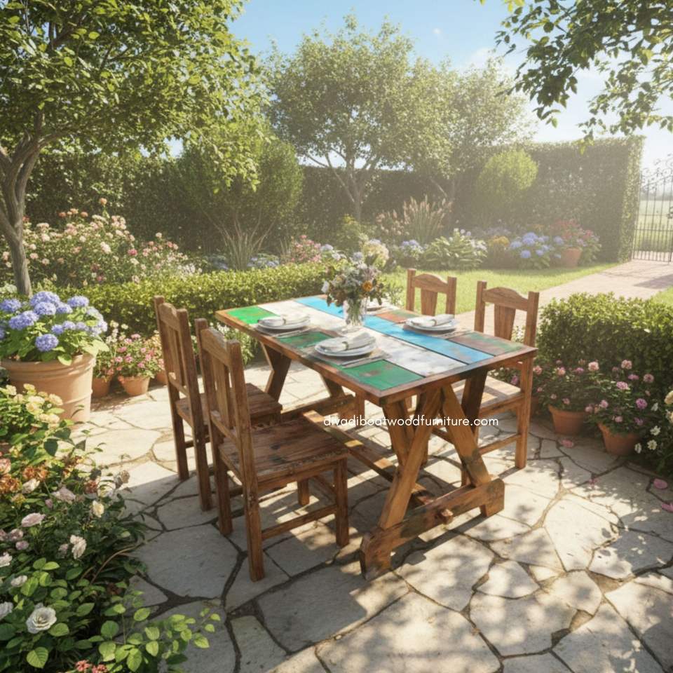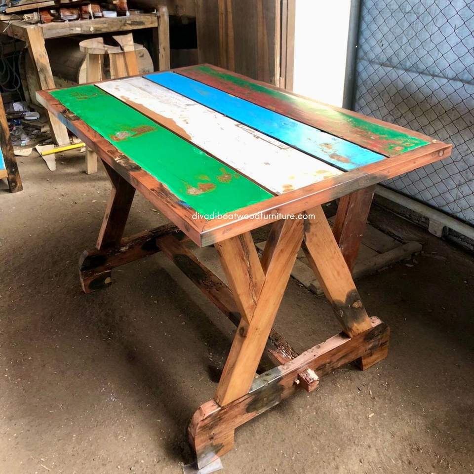 โต๊ะรับประทานอาหารทำมือจากไม้เรือรีไซเคิล สีธรรมชาติ สำหรับใช้งานกลางแจ้ง สวน บ้าน เฟอร์นิเจอร์แบบถอดประกอบได้