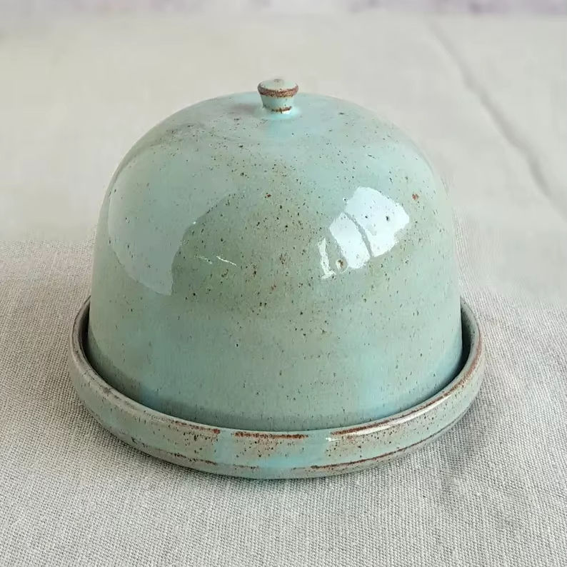 กล่องใส่เนยทรงโดมทำมือ ฝาเคลือบลายจุด จานเสิร์ฟขนาดกะทัดรัด ภาชนะเก็บเนยบนโต๊ะอาหารอย่างหรูหรา สำหรับห้องครัวสมัยใหม่