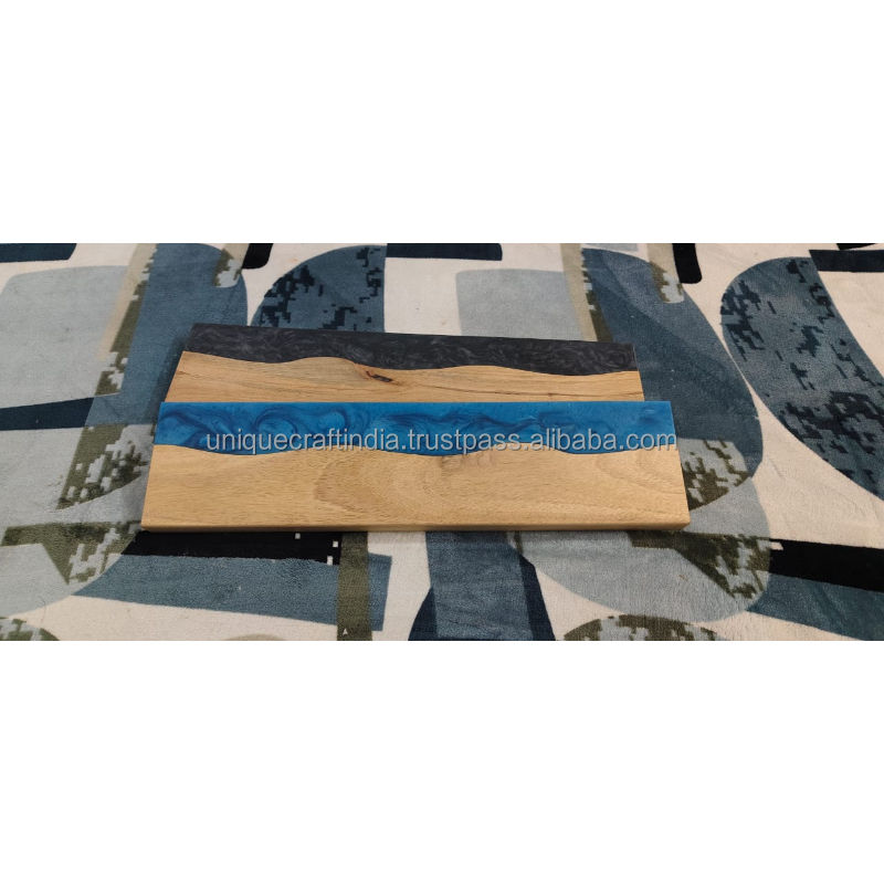 เขียงไม้แม่น้ำเคลือบอีพ็อกซี่สีน้ำเงินแบบใช้แล้วทิ้ง ทำมือ ทนทาน เป็นมิตรกับสิ่งแวดล้อม เหมาะสำหรับเสิร์ฟชีส ของว่าง งานแต่งงาน และใช้ในครัว