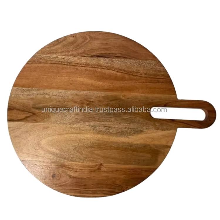 เขียงไม้มะม่วงอะคาเซียทรงกลม งานแฮนด์เมด ทนทาน ขอบโค้งมน ถาดเสิร์ฟชีสและเนื้อสัตว์แห้งคุณภาพพรีเมียม
