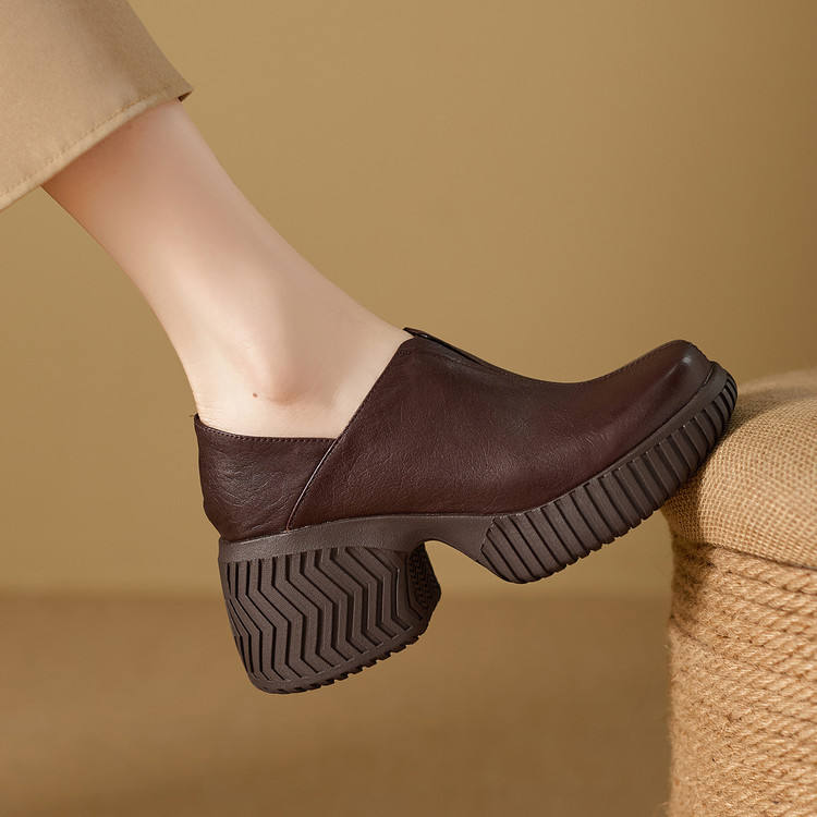 รองเท้าหนังแท้ทำมือ ทนทาน หัวมน ส้นเตี้ย สายรัดข้อเท้าขนาดใหญ่ สไตล์เรโทร กันน้ำ พื้นนุ่ม กันลื่น