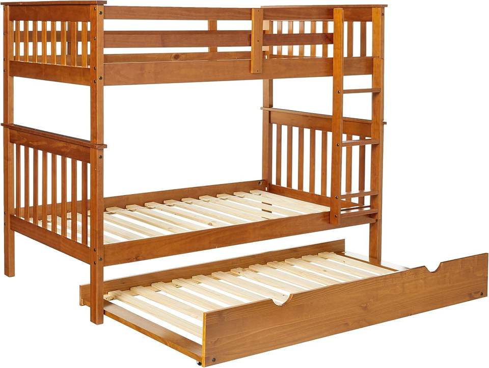 โครงเตียงสองชั้นแบบสองชั้นที่ทำด้วยมือทนทานพร้อมร่องไม้สนสีธรรมชาติดีไซน์แบบดั้งเดิมสำหรับเด็ก