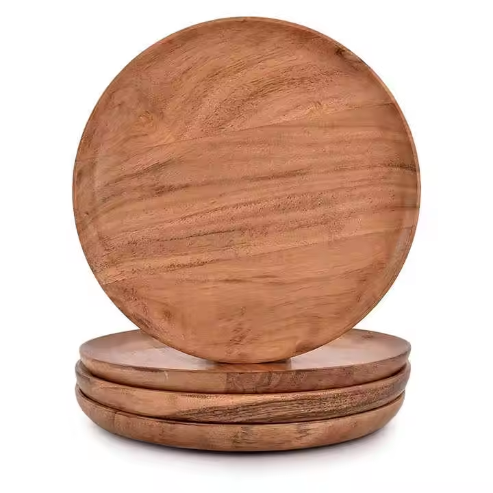 จานเสิร์ฟทำจากไม้ทรงกลมคลาสสิกเป็นมิตรกับสิ่งแวดล้อมทำด้วยมือเคลือบเงาสำหรับรับประทานอาหารห้องครัวใช้ตกแต่งโต๊ะงานฝีมือรูปพระจันทร์เสี้ยว