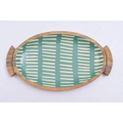 ถาดไม้รูปวงรีทำมือ เป็นมิตรกับสิ่งแวดล้อม ทนทาน ลายพิมพ์เคลือบเงา มีหูจับด้านข้าง ใช้สำหรับเสิร์ฟอาหาร ตกแต่งงานแต่งงาน งานดีวาลี