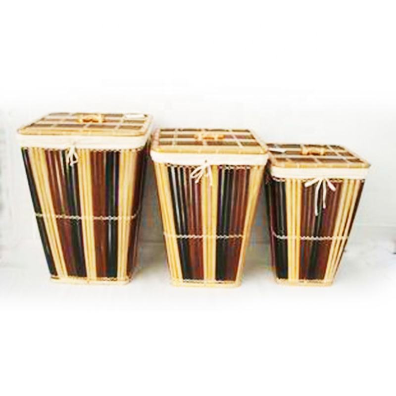 ชุดตะกร้าซักผ้าสไตล์ศิลปะพื้นบ้านทำจากไม้ไผ่งานฝีมือเป็นมิตรกับสิ่งแวดล้อม