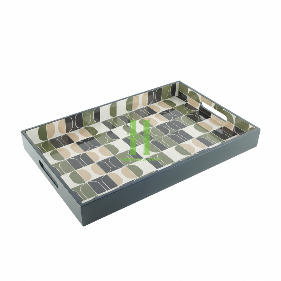 ถาดเสิร์ฟทำมือจากวัสดุธรรมชาติเคลือบเงา งานฝีมือเวียดนามสวยงามสไตล์โบฮีเมียน เหมาะสำหรับใส่กาแฟ ขนมอบ และเครื่องประดับ