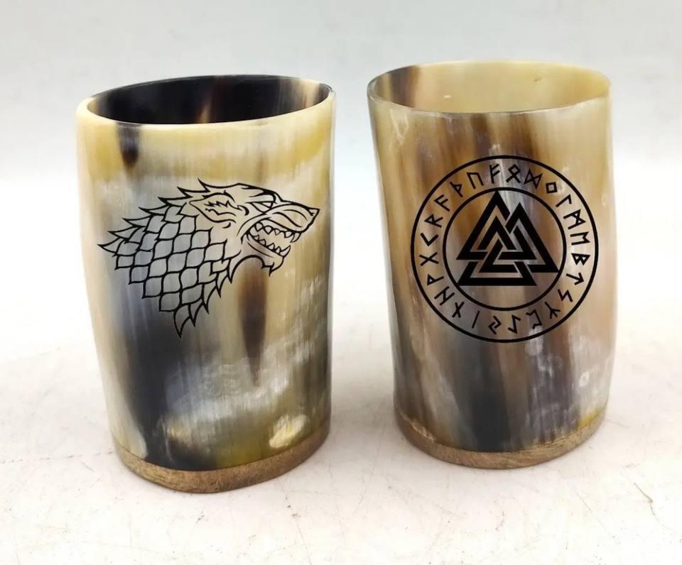 เขาสัตว์แท้ทำมือ เป็นมิตรกับสิ่งแวดล้อม สำหรับดื่มเครื่องดื่มสไตล์ยุคกลาง งานฝีมือธรรมชาติ ขัดเงา งานศิลปะทางศาสนา