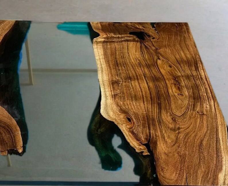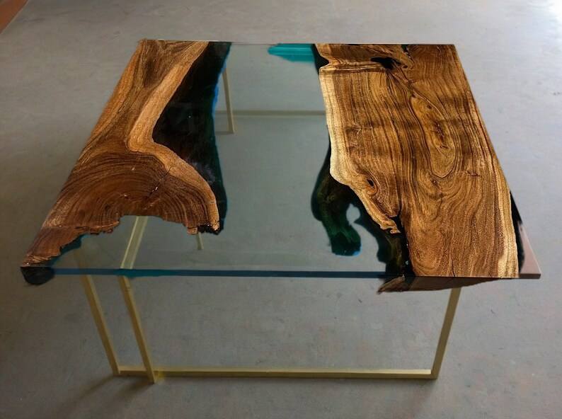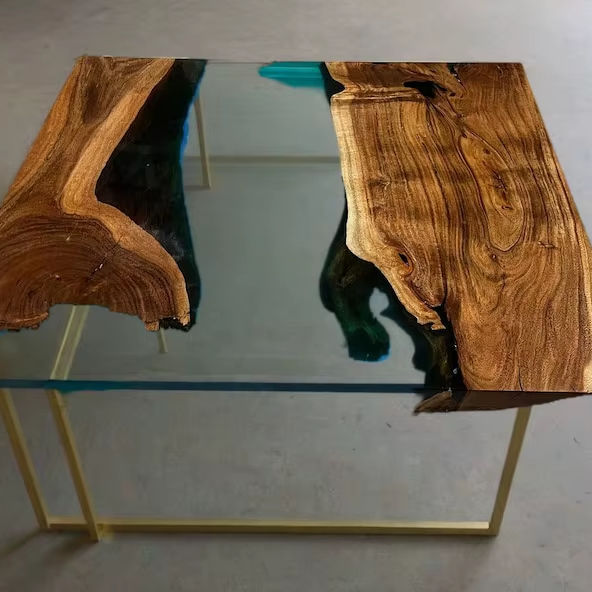 โต๊ะกาแฟเรซิ่นรูปทรงแม่น้ำ งานแฮนด์เมดรักษ์โลก สีและขนาดสั่งทำได้ วาดลายด้วยมือ รูปทรงธรรมชาติ งานฝีมือเหนือกาลเวลา