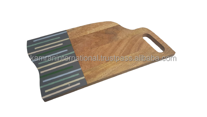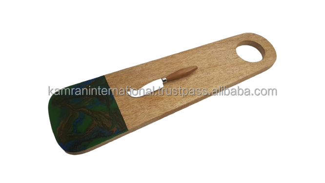 เขียงไม้มะม่วงพร้อมมีดตัดสำหรับใช้ในครัวที่บ้านทำด้วยมือเป็นมิตรกับสิ่งแวดล้อม
