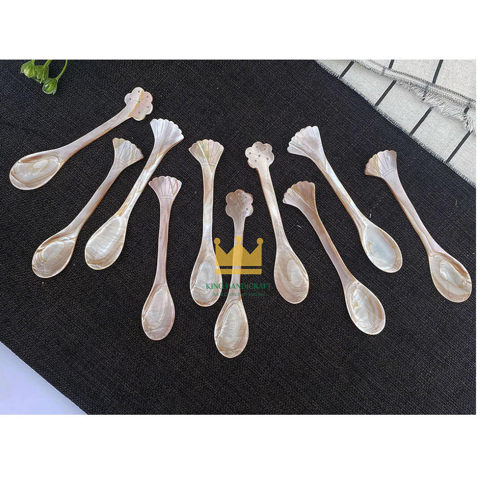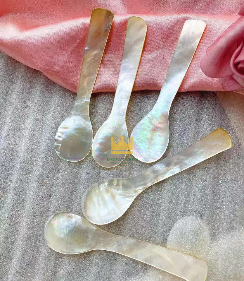 ช้อนเปลือกหอยสังข์ทำมือทันสมัยเป็นมิตรกับสิ่งแวดล้อม ประดับด้วยมุกธรรมชาติ สำหรับไอศกรีมและคาเวียร์ เหมาะสำหรับแจกในงานปาร์ตี้