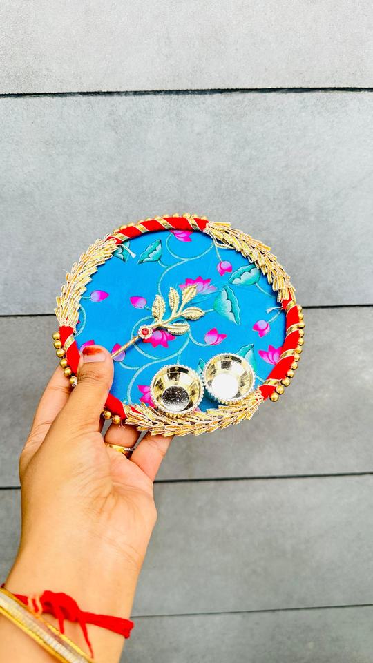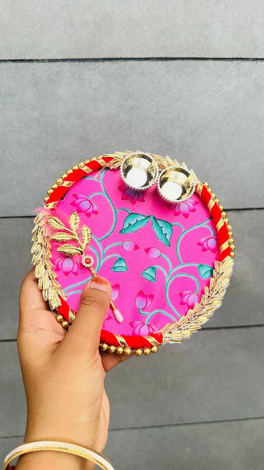 ถาดบูชาประดับตกแต่งแบบดั้งเดิม งานฝีมือประณีต สำหรับพิธีกรรมศักดิ์สิทธิ์ ถาดบูชาทำมือ ฐานผ้าสีแดงเข้ม