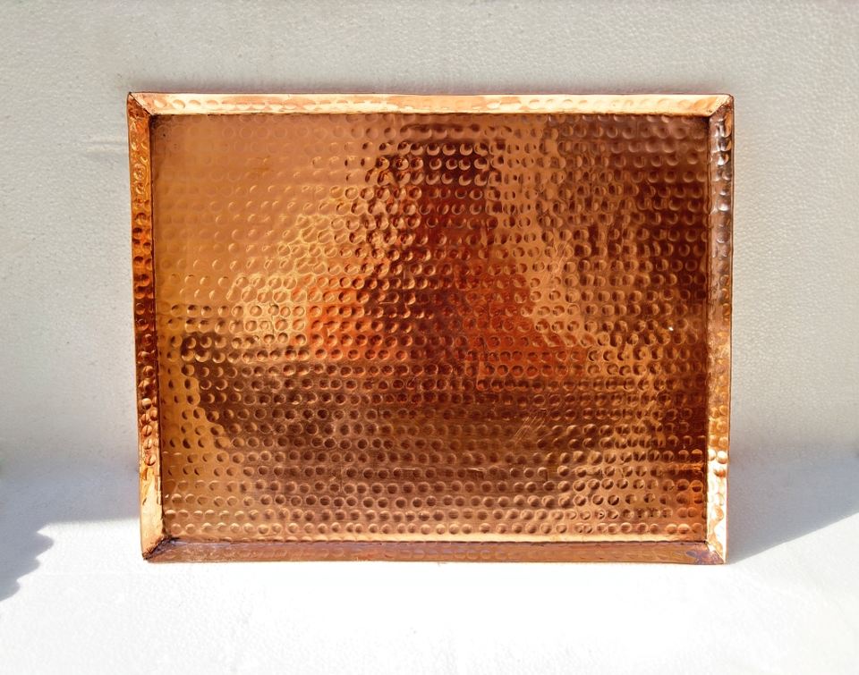 Handcrafted Elegant Pure Copper Hammered Serving Tray Unique Textured Metal for Weddings & Home Decorative Display