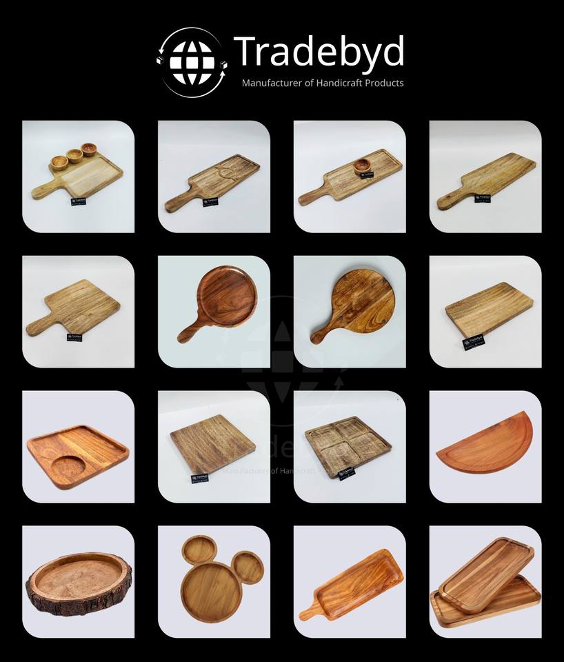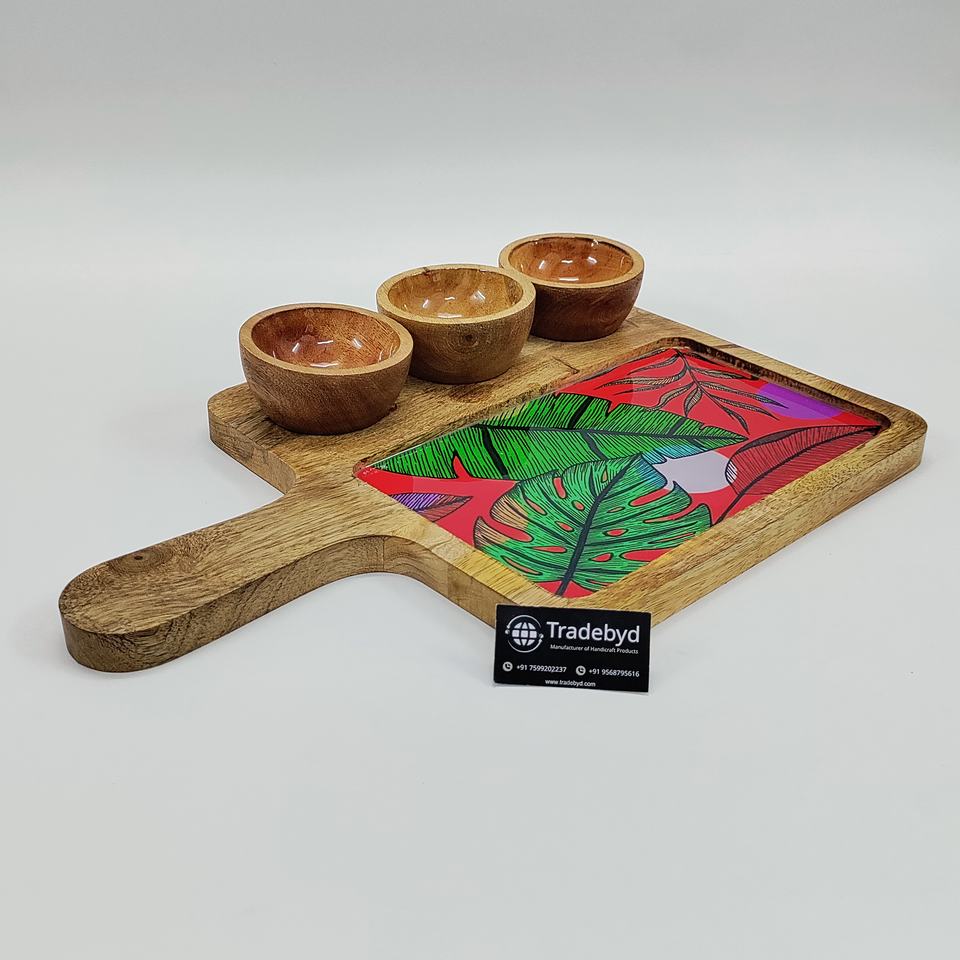 จานชามไม้มะม่วงเคลือบพิมพ์ลายทำมือทรงสี่เหลี่ยมไม่มีหูจับและหูจับ3ชามโดย tradebyd