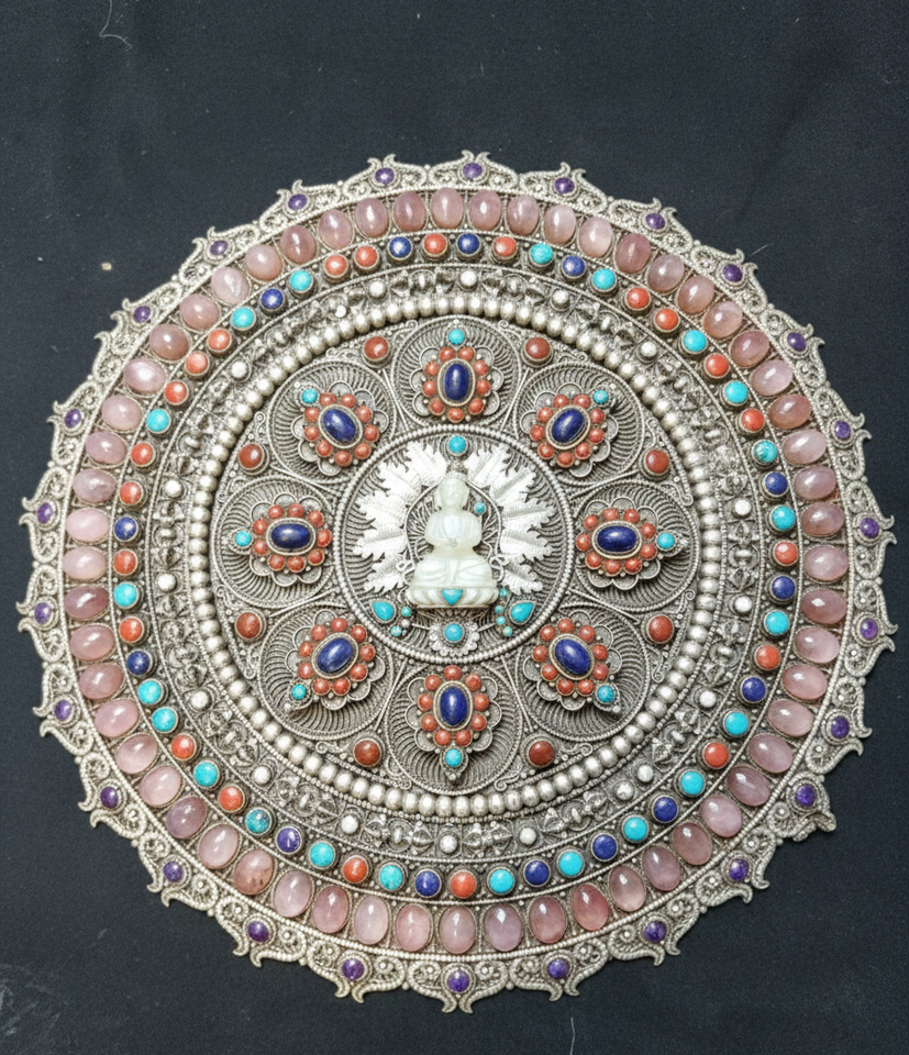 Handcrafted Energized Filigree Statue Tibetan Buddhism Brass Copper Casting Religious Mandala Figurine Sculpture Collectible