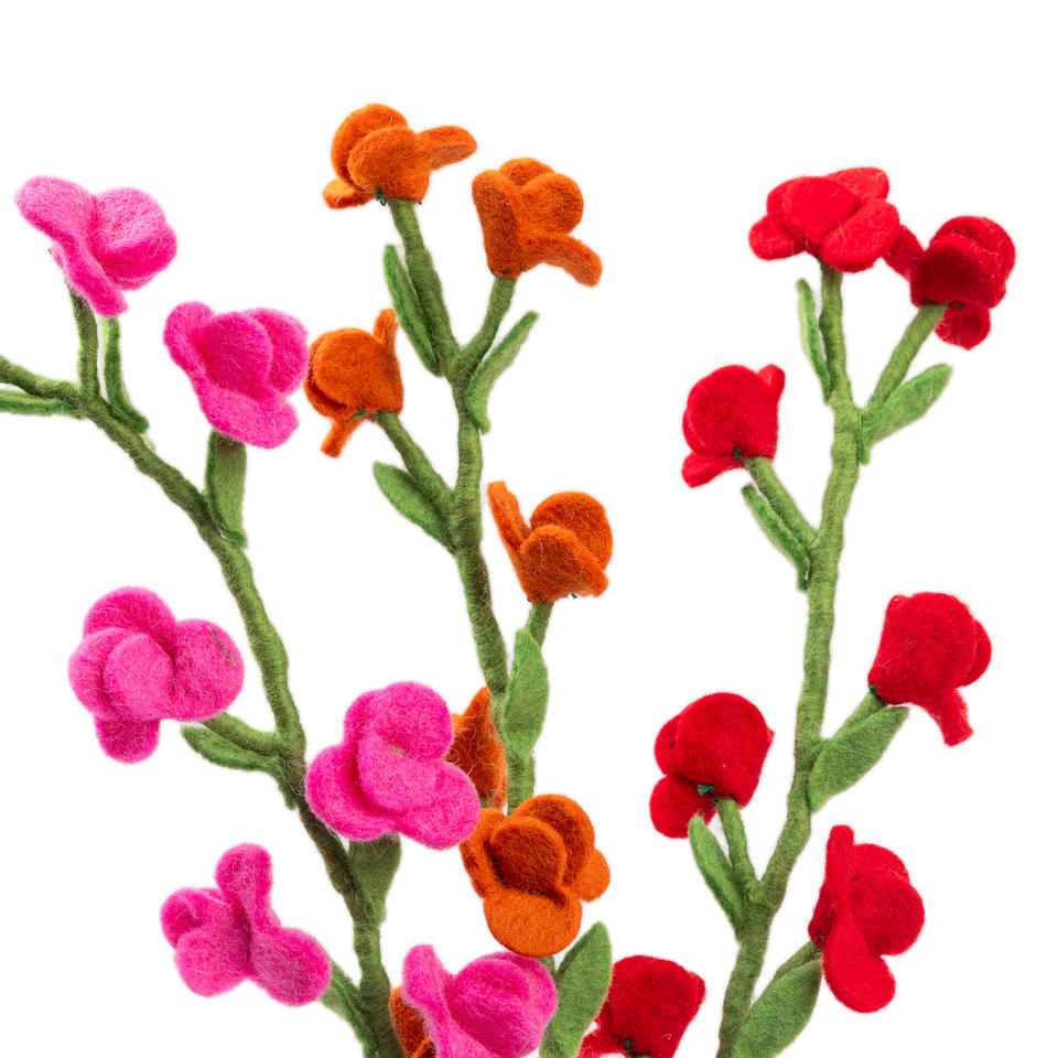 งานฝีมือรู้สึกช่อดอกไม้สีชมพู, สีส้ม, สีแดงบุปผาในแจกันแก้วใสเป็นมิตรกับสิ่งแวดล้อมเหมาะสำหรับการตกแต่งบ้าน
