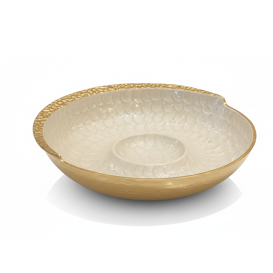 ถาดเสิร์ฟอะลูมิเนียมลายเกล็ดปลา งานแฮนด์เมด สไตล์วินเทจ เป็นมิตรกับสิ่งแวดล้อม ขอบชุบทอง ชามใส่ซอส รูปทรงออร์แกนิก ทันสมัย