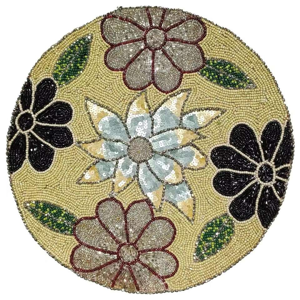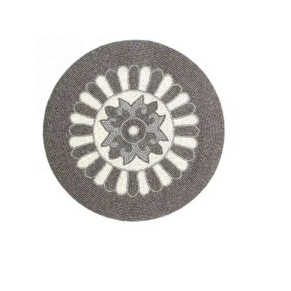 เสื่อปูโต๊ะทรงกลมลูกปัดลายดอกไม้ทำด้วยมือสำหรับงานแต่งงานในบ้านฤดูใบไม้ผลิของตกแต่งโต๊ะ