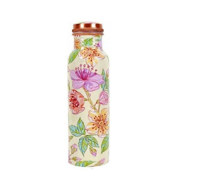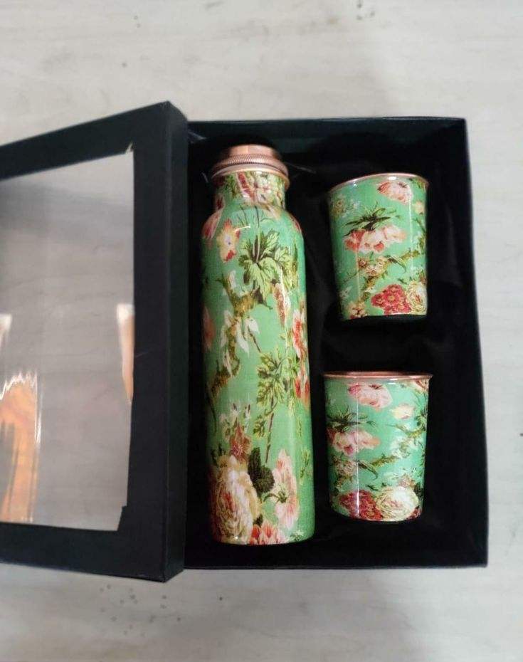 ชุดขวดน้ำทองแดงพิมพ์ลายดอกไม้ทำมือ พร้อมแก้วน้ำสองใบ สำหรับดื่มเพื่อสุขภาพ เหมาะสำหรับการเดินทาง สำนักงาน และชุดอุปกรณ์ครัว