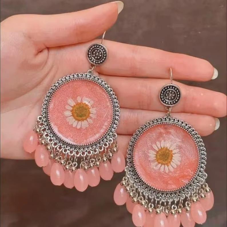 ต่างหูดอกไม้ทำด้วยมือสำหรับผู้หญิงชุบทองสไตล์ชาติพันธุ์ Jhumka Jhumki เครื่องประดับอินเดียสำหรับงานแต่งงานปาร์ตี้สวมใส่และของขวัญ