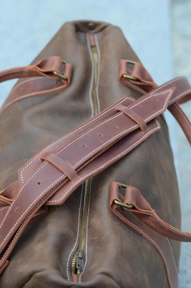 กระเป๋าหนังแท้ทำมือทรงดัฟเฟิล สไตล์วินเทจ สำหรับเดินทางช่วงสุดสัปดาห์ ขนาดใหญ่ ใส่ของได้เยอะ สำหรับผู้ชายและผู้หญิง มีซิป