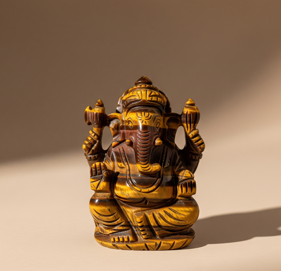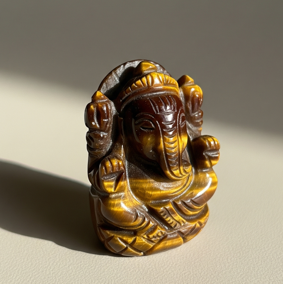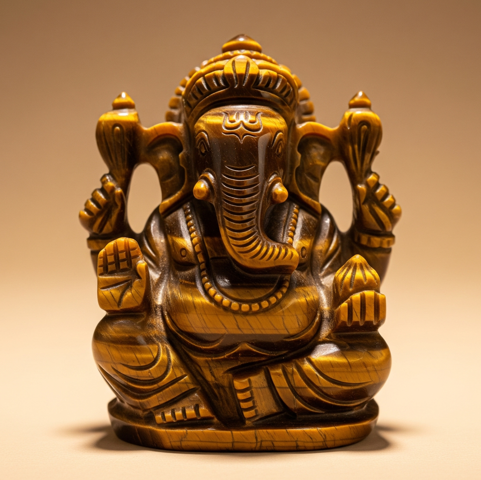 หินควอตซ์คริสตัลรูปตาเสือแกะสลักรูปปั้นพระพิฆเนศทำด้วยมืองานฝีมือ