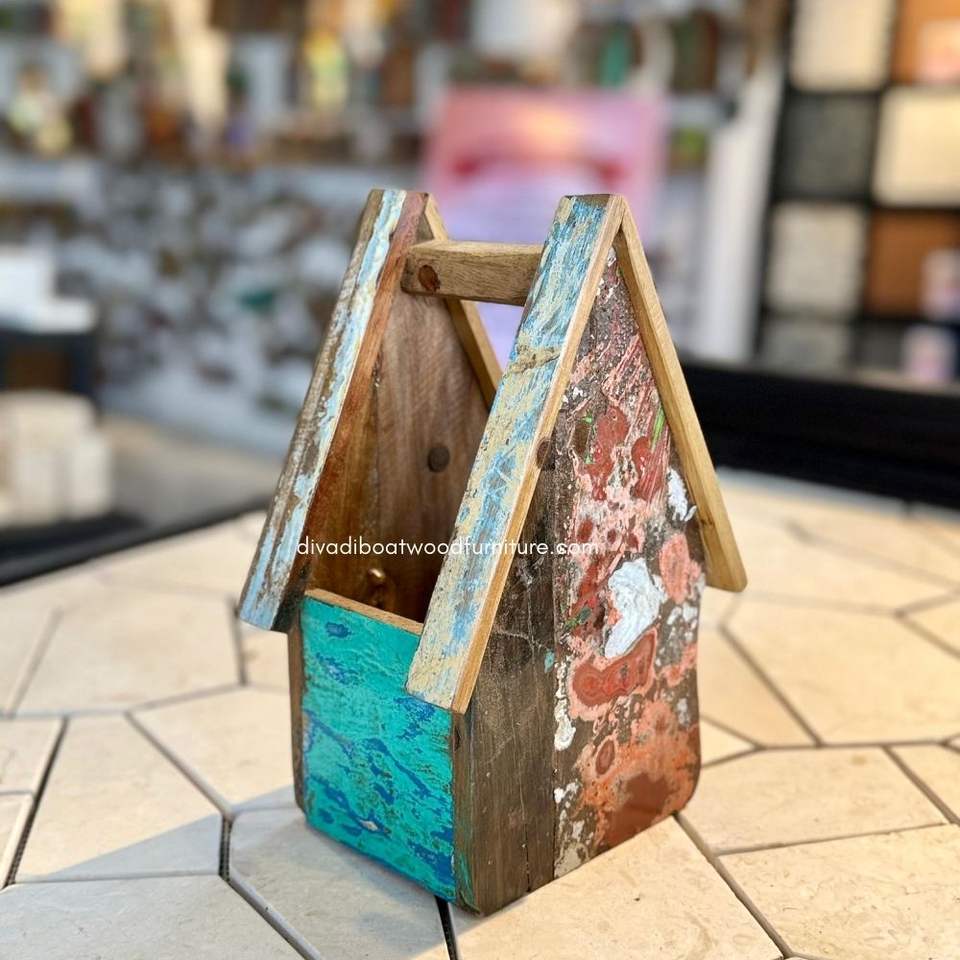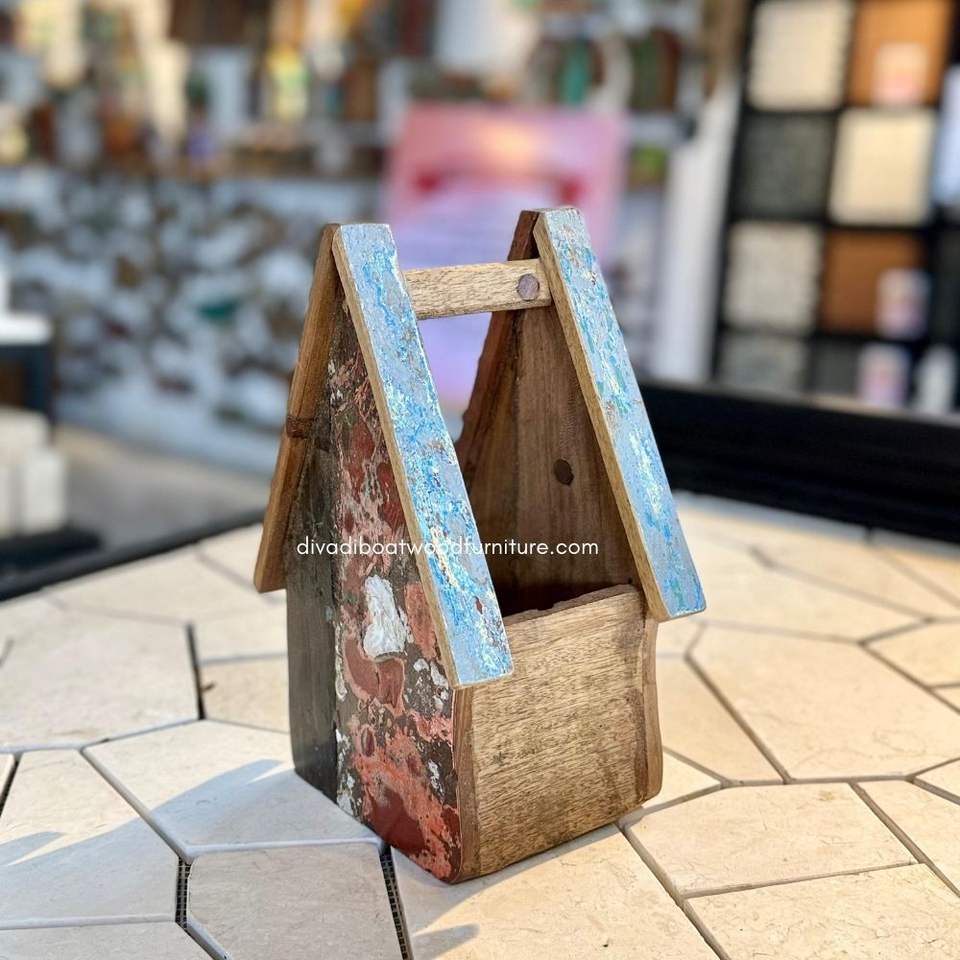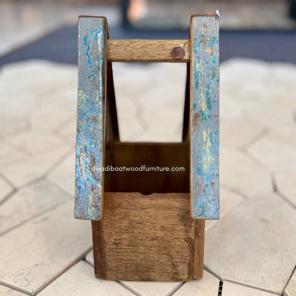 อุปกรณ์ตกแต่งสวนทำมือ กระถางดอกไม้/ปลูกต้นไม้ ดีไซน์บ้าน ทำจากไม้เรือรีไซเคิล สีธรรมชาติ ขายส่ง